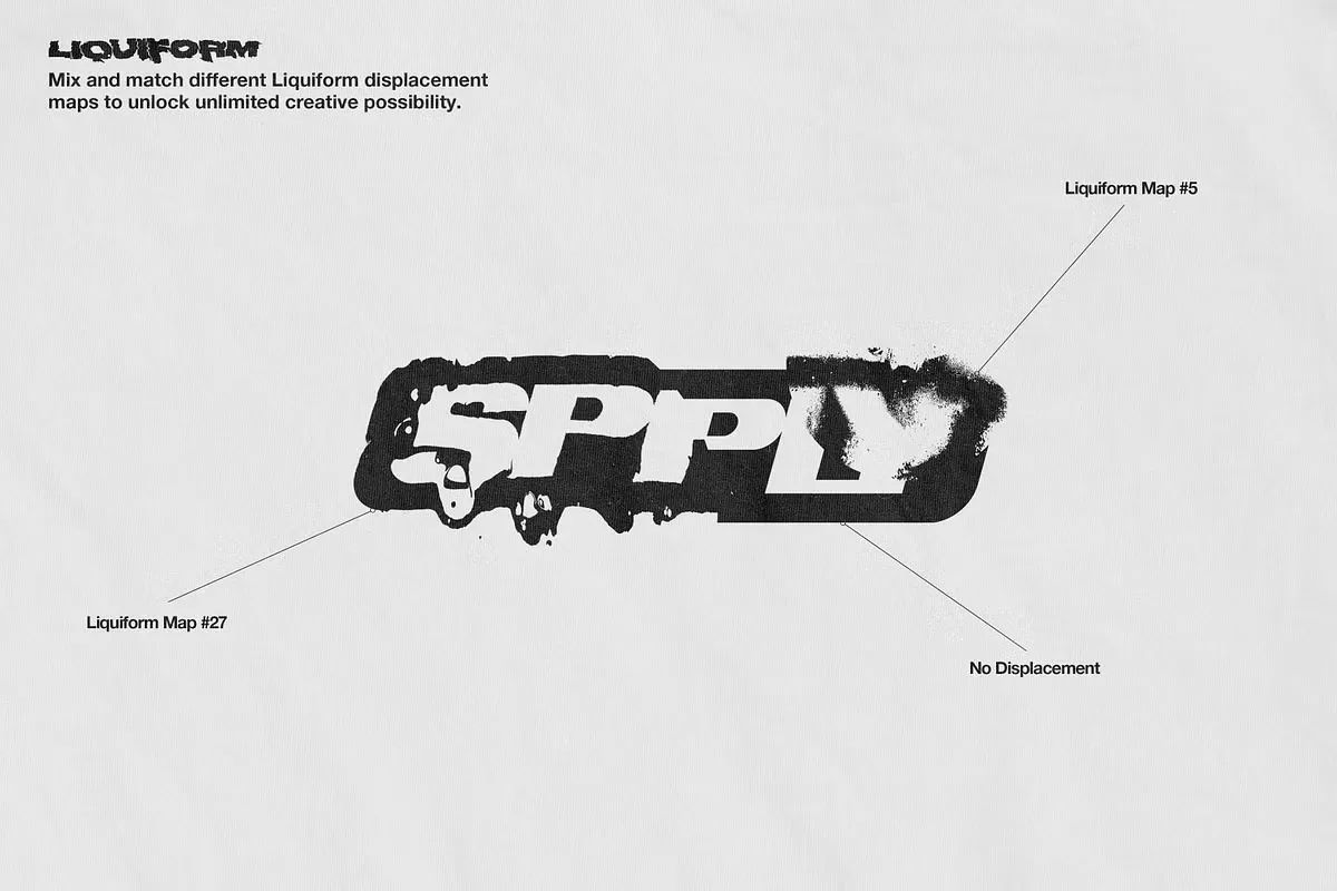 Liquiform is a set of 50 Photoshop displacement maps and 10 textures. Add unique distortion effects to any graphic or image in seconds. Experiment with image scale or mix/combine different displacement maps for endless possibilities.