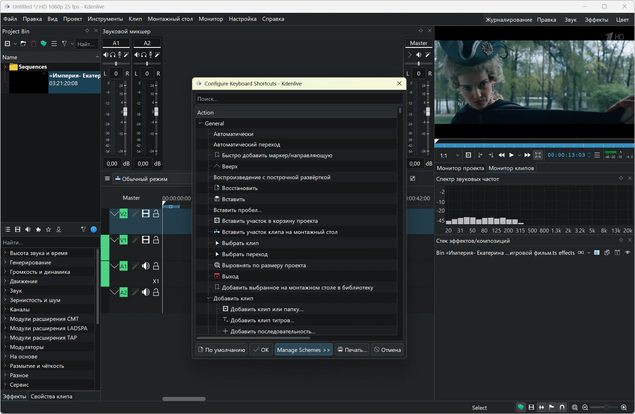 Kdenlive is a free non-linear video editor that covers most user needs, from basic video editing to professional work. It is possible to use any audio/video formats (for example QuickTime, AVI, WMV, MPEG, etc.), 4:3 and 16:9 aspect ratios are supported for PAL, NTSC and various HD standards, including HDV and AVCHD.