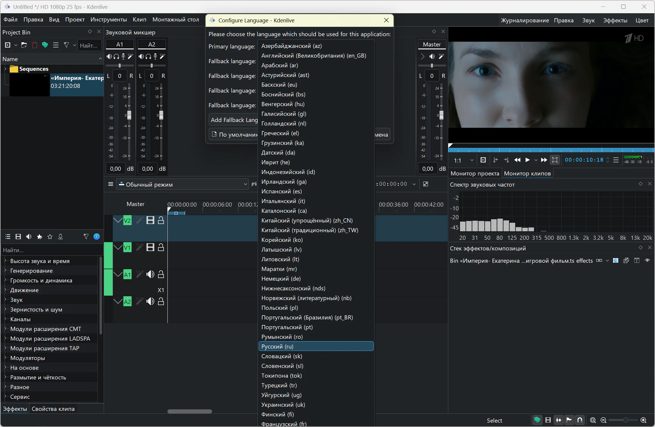 Interface language: Russian, English and others