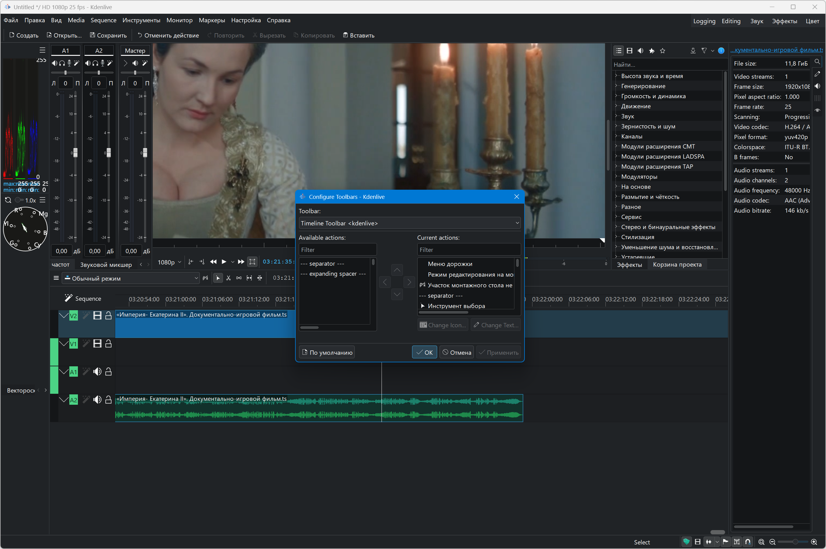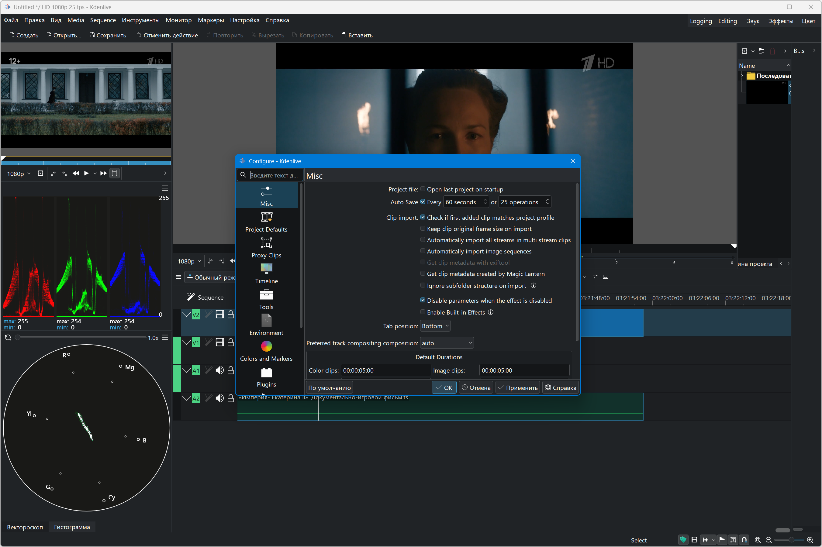 Kdenlive is a free non-linear video editor that covers most user needs, from basic video editing to professional work. It is possible to use any audio/video formats (for example QuickTime, AVI, WMV, MPEG, etc.), 4:3 and 16:9 aspect ratios are supported for PAL, NTSC and various HD standards, including HDV and AVCHD.