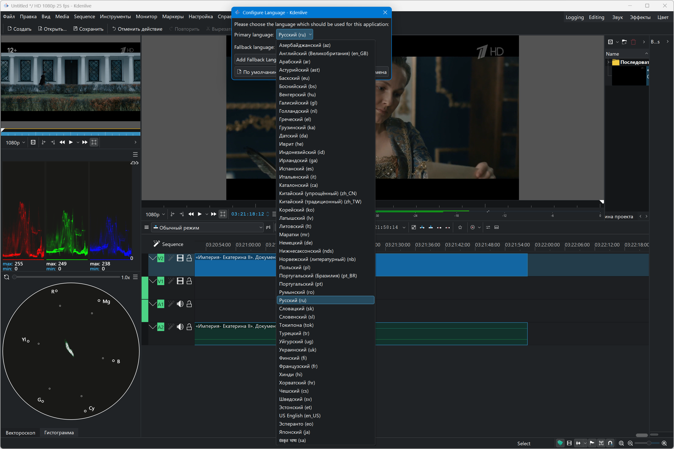 Interface language: Russian, English and others